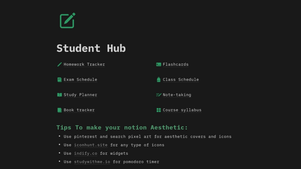 Student Hub Dashboard for Notion: stay organized and on top of studies with essential templates and features